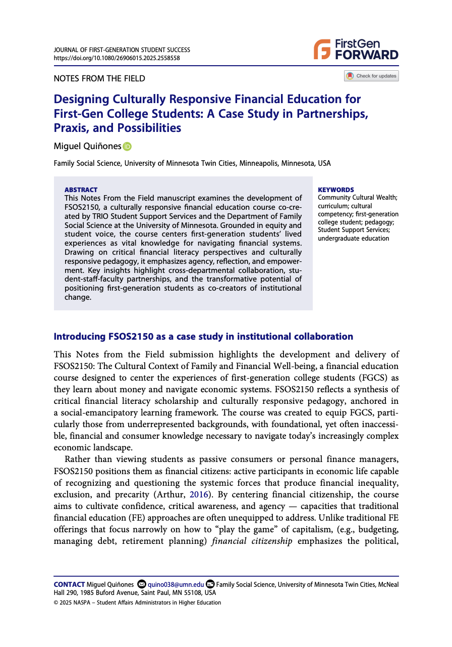 My scholarly work investigates how culture, identity, and family shape financial socialization, and I bring this multidisciplinary perspective into the classroom to make learning both rigorous and relevant for students across university and community contexts.